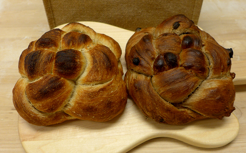 Our award-winning Organic Artisan Cinnamon Raisin Maple Walnut Sourdough Bread is now available in a 1-pound Braided Challah-Style round loaf we call “Braidness™”. There’s 1 notable exception to this traditional bread: there’s no egg wash to give the bread a shiny, amber coating.