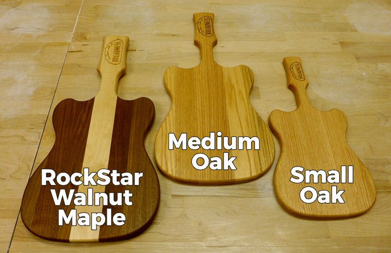 Our Breadness Medium Solid Oak Guitar Cutting/Serving Board is available here.