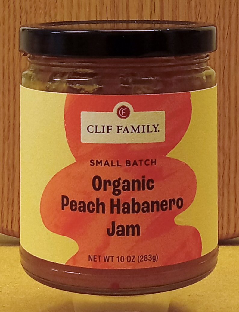 Clif Family Organic Peach Habanero Jam is both sweet and spicy. The mellow peach preserve hits the taste buds first, followed by the glow of habanero pepper with just the right amount of heat.